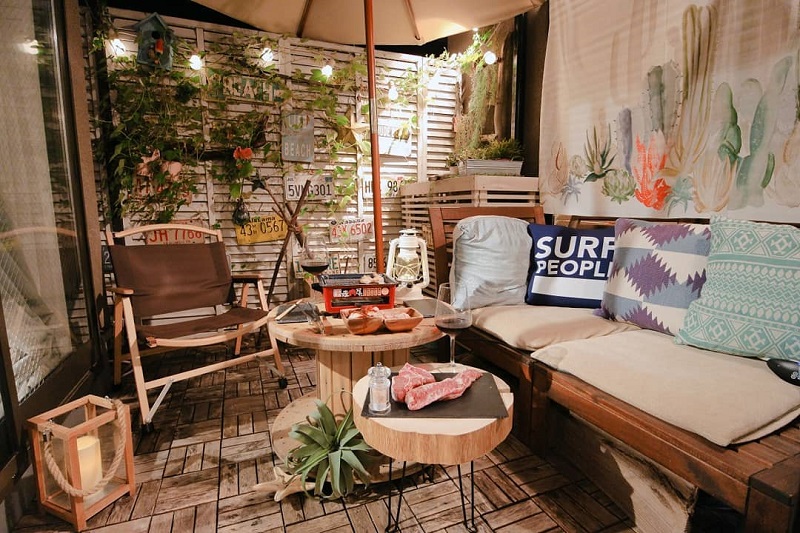 如果觉得太麻烦,只需摆放桌子和椅子,也能让阳台变成饮酒喝茶的放松空间。建议选择折叠桌椅,不使用时合起收纳,可以有效地利用阳台空间。