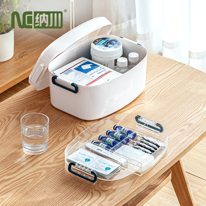 家里常备点要是很重要的,特别是家里小孩子还小的,难免感冒发烧,有个药箱专门放置宝宝常备药,需要时一拿就到,快速舒缓宝宝的不适感。介绍的这款药箱采用的是上层不同深度分格,下层大收纳空间的设计,分类收纳散装药品或者医护小工具,满足日常备药所需。盖子顶部提手设计,可以整盒移动拿取,双侧卡扣紧密贴合,稳固锁足箱体,作为收纳平常各式生活小件物品,让家居生活整洁有序。
