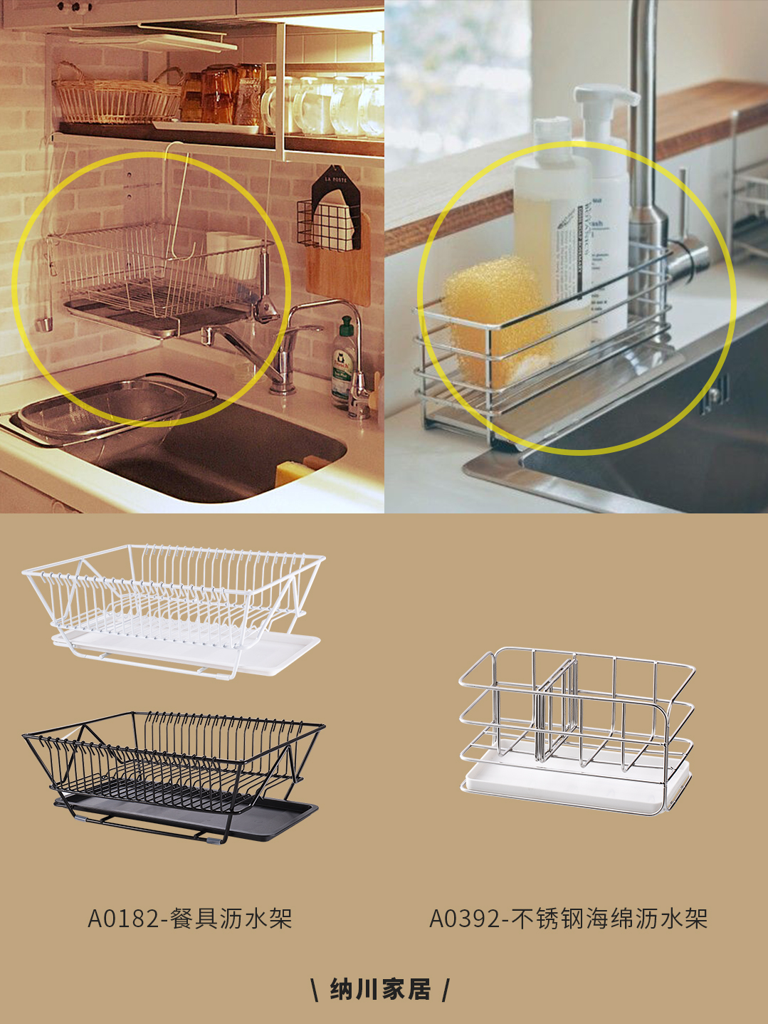 常在家吃饭的话可以用餐具架来提高家务效率,收纳餐具的同时方便沥水,清洗后通风晾干更加卫生,托盘设计水滴不会沾湿台面。清洁使用的海绵、锅刷等同样可以用沥水架收纳。