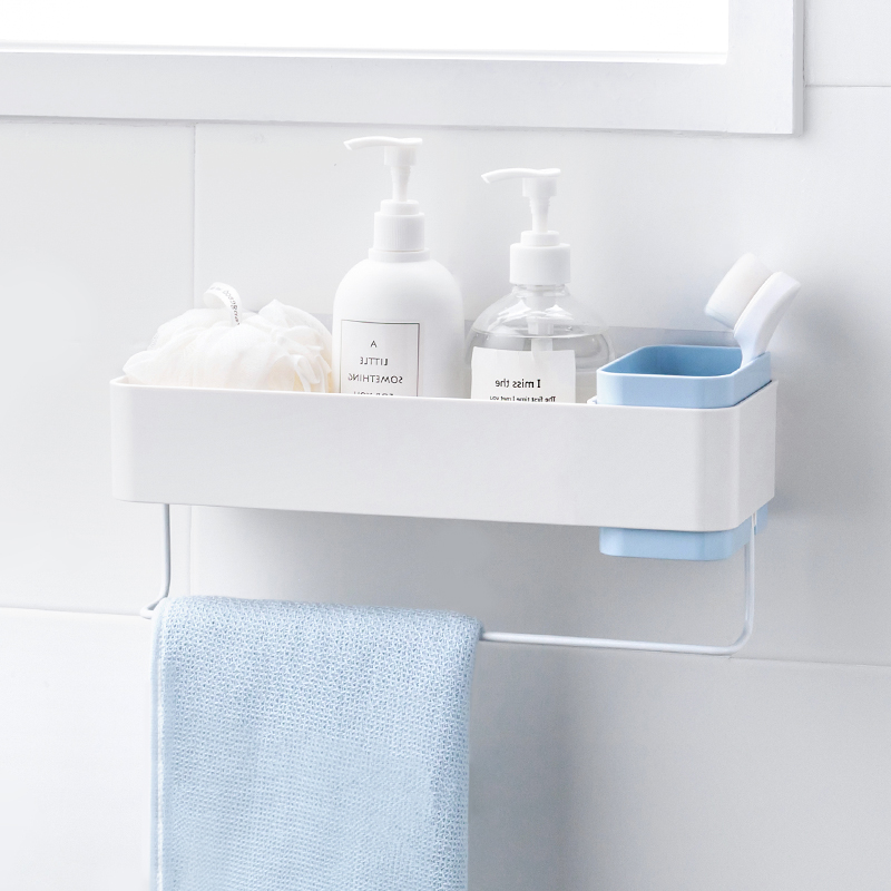 洗漱用品是浴室台面收纳的一大难题,纳川浴室置物架,壁挂设计节省台面空间,大容量设计,可收纳洗漱瓶罐等,日常所需伸手即得。物品分格放置,井井有条。人性化沥水设计,干净卫生。底部带L形挂杆,可晾挂收纳毛巾,轻松增加浴室收纳空间。
