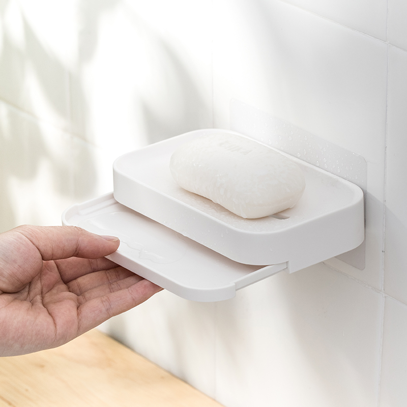 洗手后的香皂经常把浴室洗手台弄得粘乎乎。纳川壁挂皂盒,壁挂台面两用设计,便捷随心。弧面设计,快速沥水,肥皂不易泡水软化。抽屉式集水托盘,抽拉顺畅,方便倒水。配套魔力贴,壁挂安装,不易损伤墙面。可拆分清洗,干净卫生。