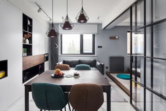 在小户型的户型图里,往往会有一个面积极小的房间,当作次卧空间太过于狭窄,也就被很多家庭闲置,慢慢变成了杂物间。其实,如果这个房间与公共空间相连,不如把隔断两个空间的厚墙去掉,改用玻璃推拉门做隔断,这样就能充分扩大室内采光,给家居环境带来明亮轻松的感觉,空间自然也会显得更通透一些。