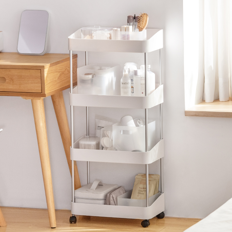 想要把零散物品都收纳起来,又要做到取用便捷,这时需要一个可以随时出现在身边的收纳工具。纳川可移动置物架,三层、四层两种规格可选,满足不同收纳需求。分层设计节省收纳空间,整洁易拿取。底部带有360°万向轮,顺滑灵活,移动平稳。简洁大气外观,适用于多种居家场景。
