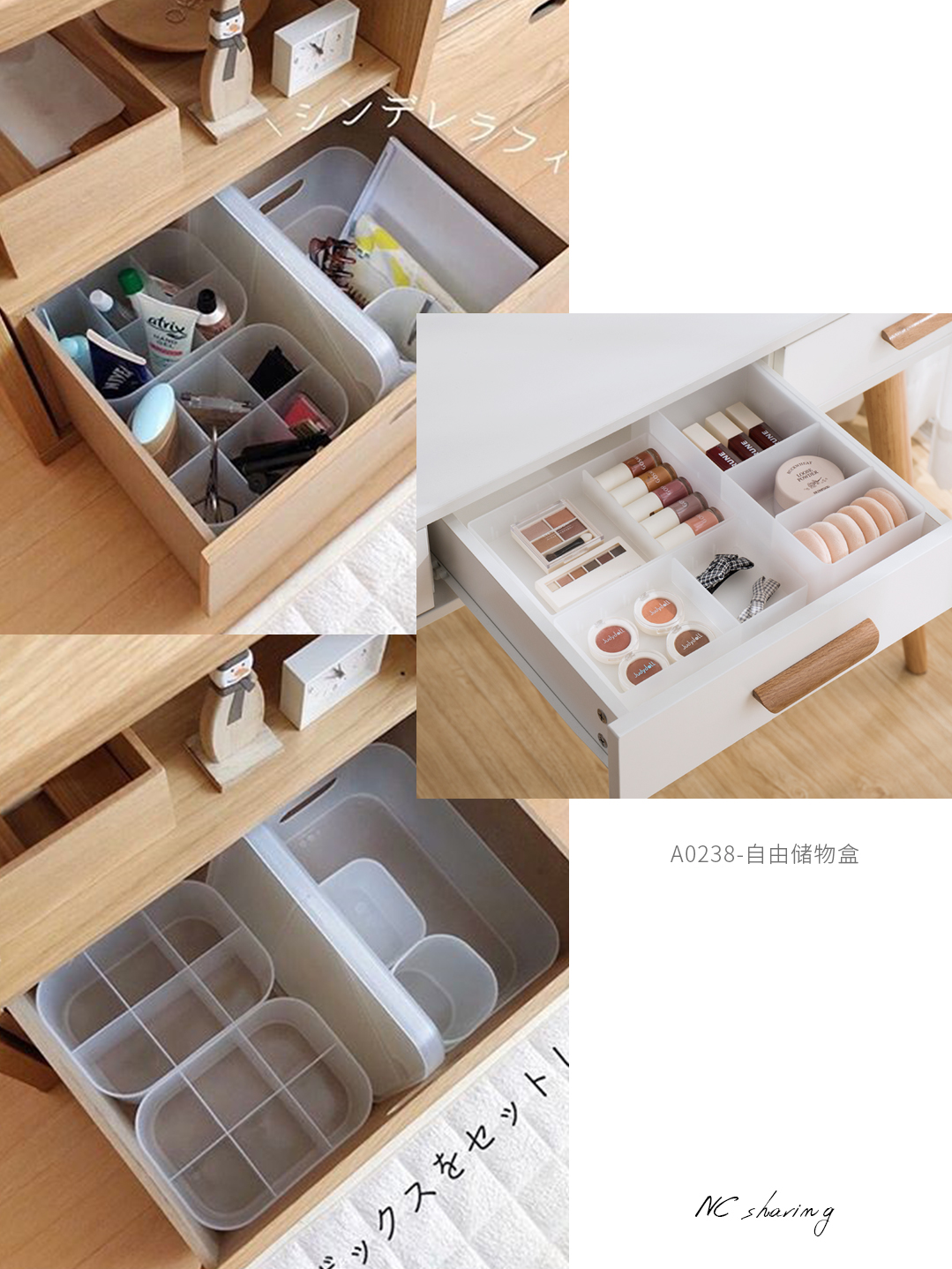 在抽屉内放置收纳盒,搞定东倒西歪的小物品。选择需要的规格进行搭配,马上拥有高效整洁的抽屉。
